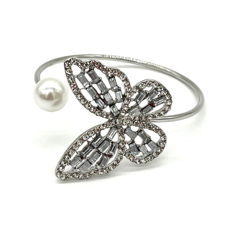 Abby Clear Stone Butterfly Pearl Charm Bracelet