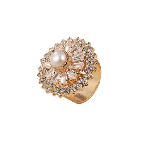 Artful Rhinestone Size Adjustable Gold-Plated Ring
