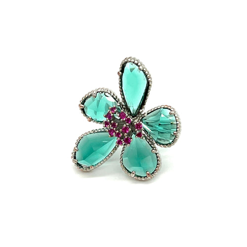 Blossom Green Silver Plated Crystal Stone Flower Ring