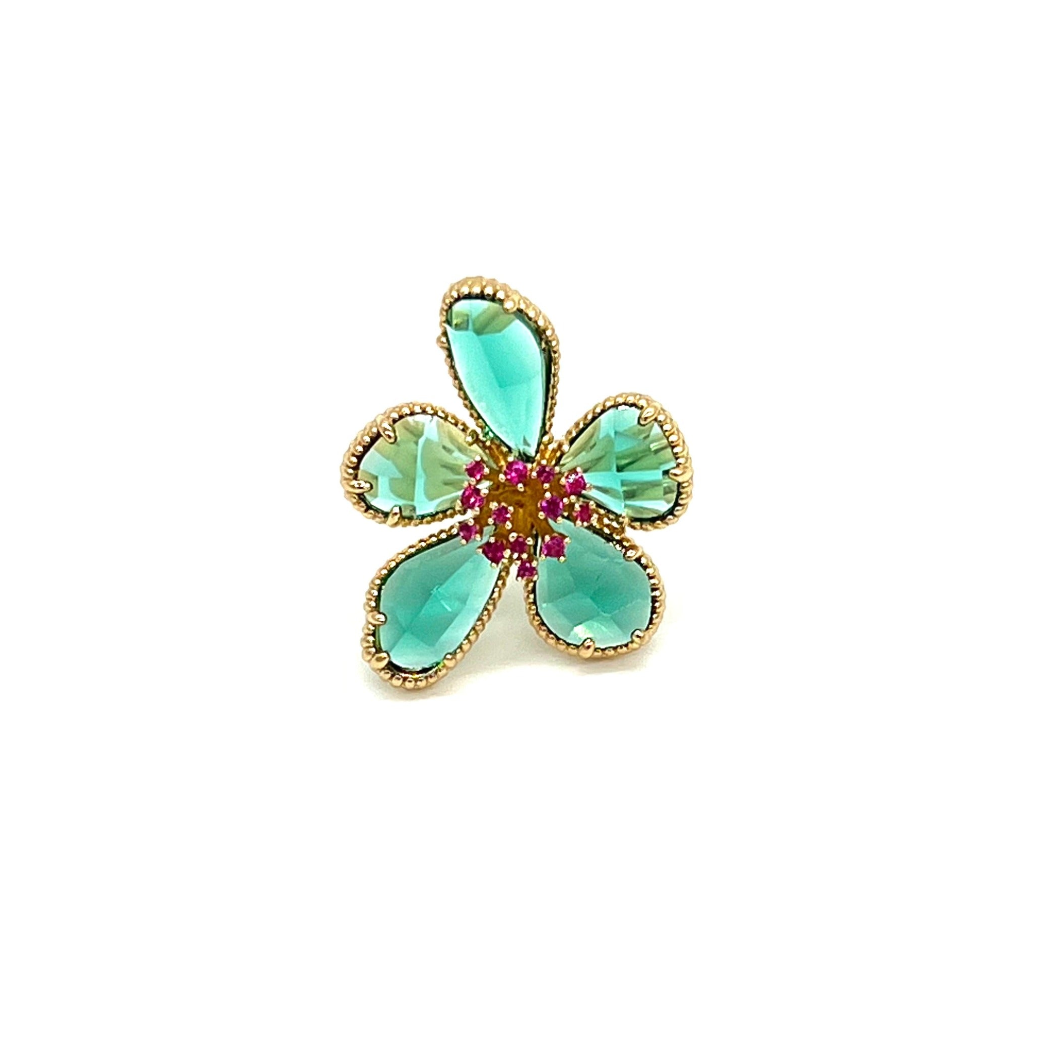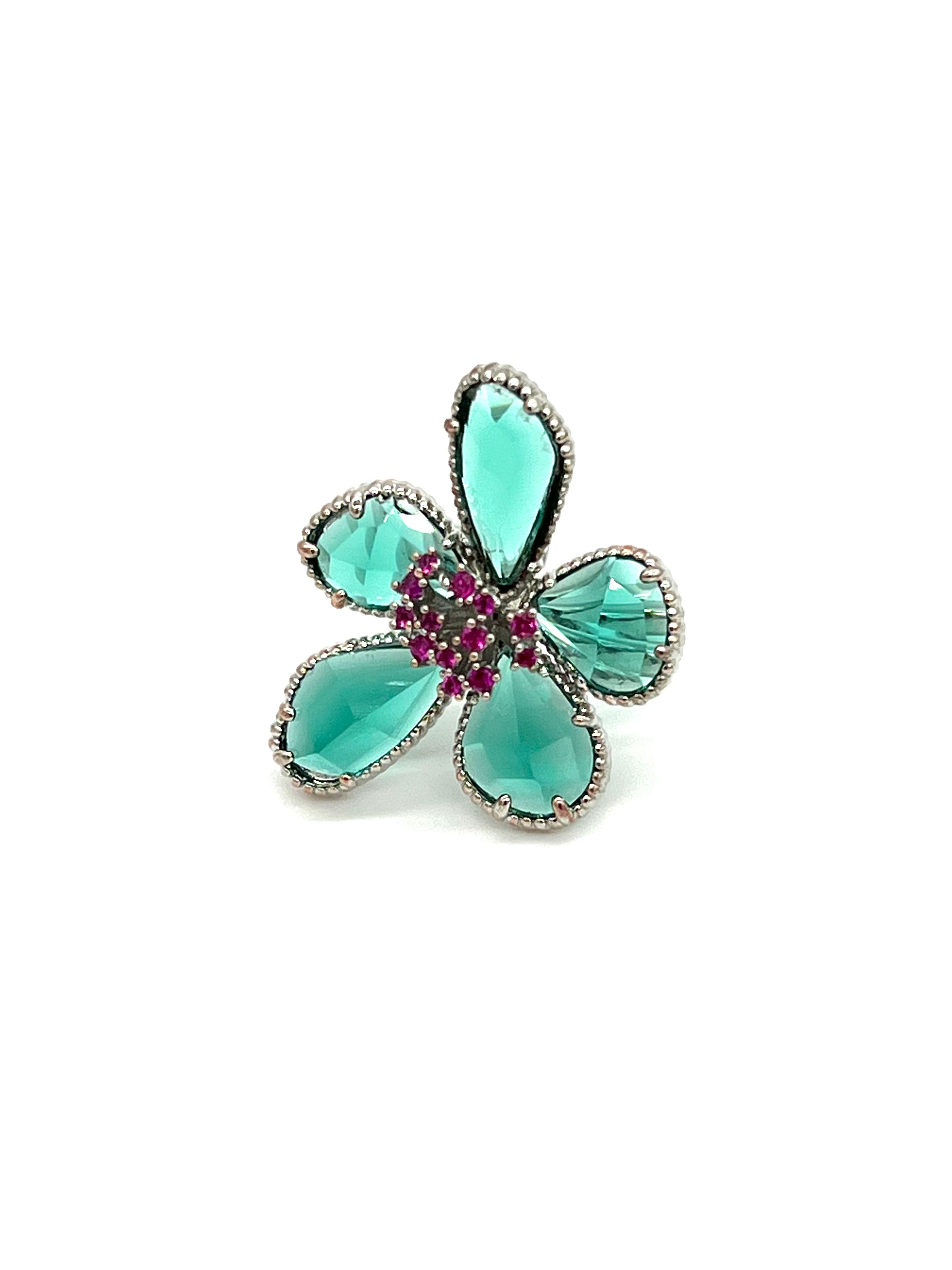 A dazzling display of grace, green cubic zircon ring on any hand it fits. Guess what? The adjustable feature makes it a fit for all! This intricate jewelry with copper and gold enameling details reflects a sober touch. All of this turns it into a delightful flower that calls for this item to be a part of every fashion lover’s outfit. Joy and pleasure are what flowers stand for, and the same applies to this precious green ring!