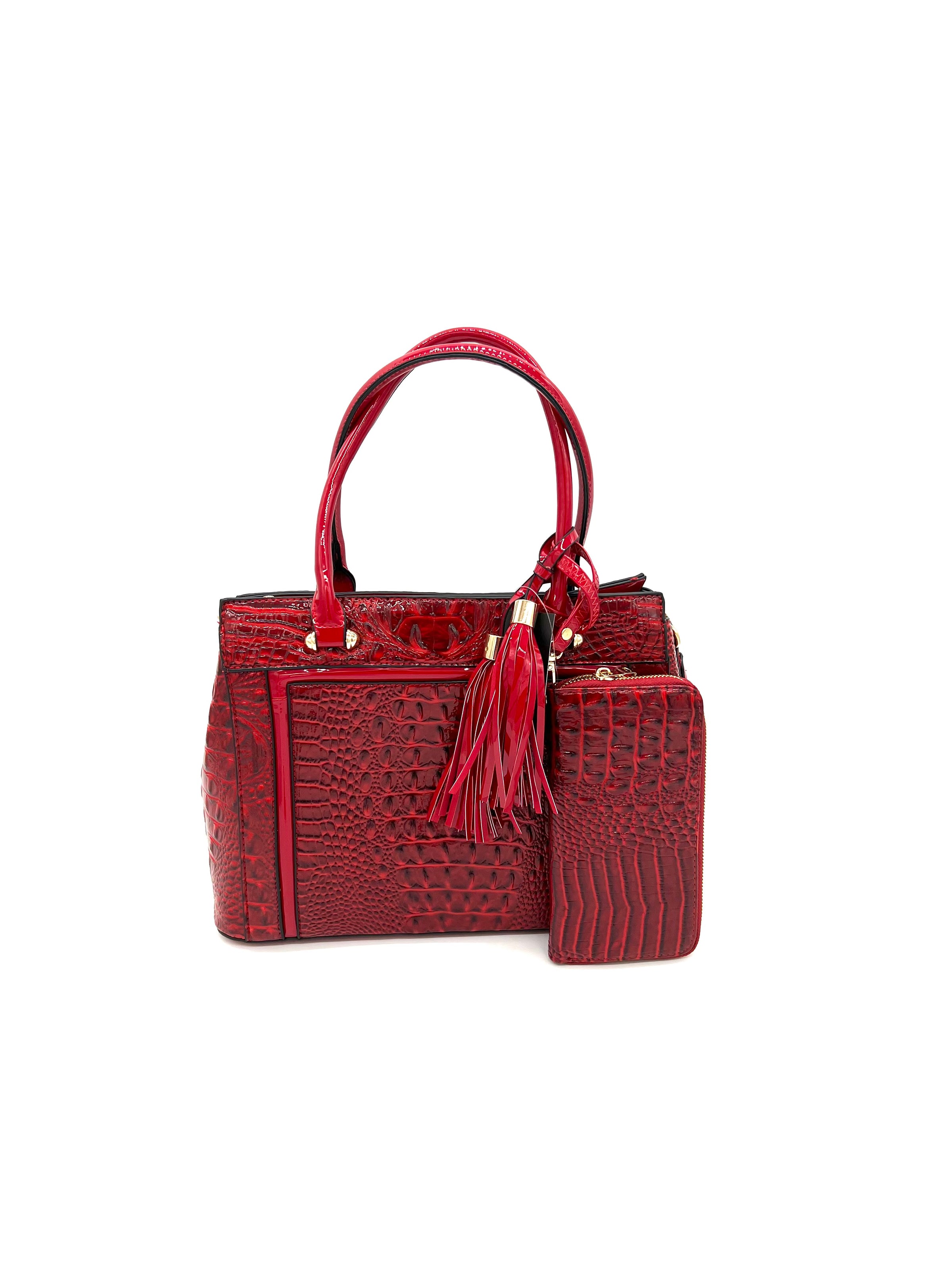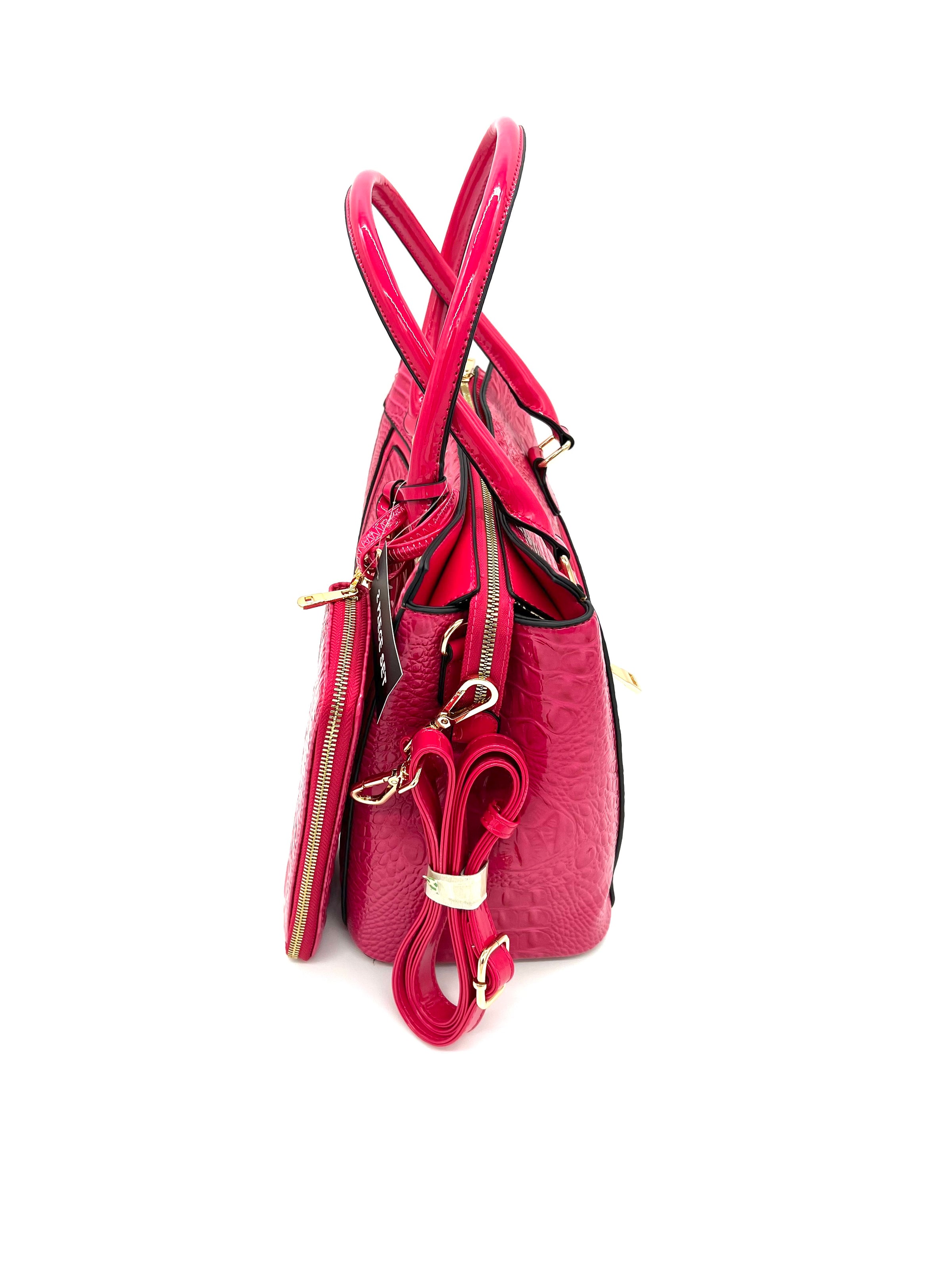 The modern PU leather Savanah handbag aligns with recent fashion trends. The two-piece bag design has multiple compartments, aiding in easily carrying all your belongings and personal items. A free wallet and an extra strap are provided with the bag. A casual yet professional look makes it easier to carry at work or for casual use daily. The shiny leather gives an elegant and refined look.
