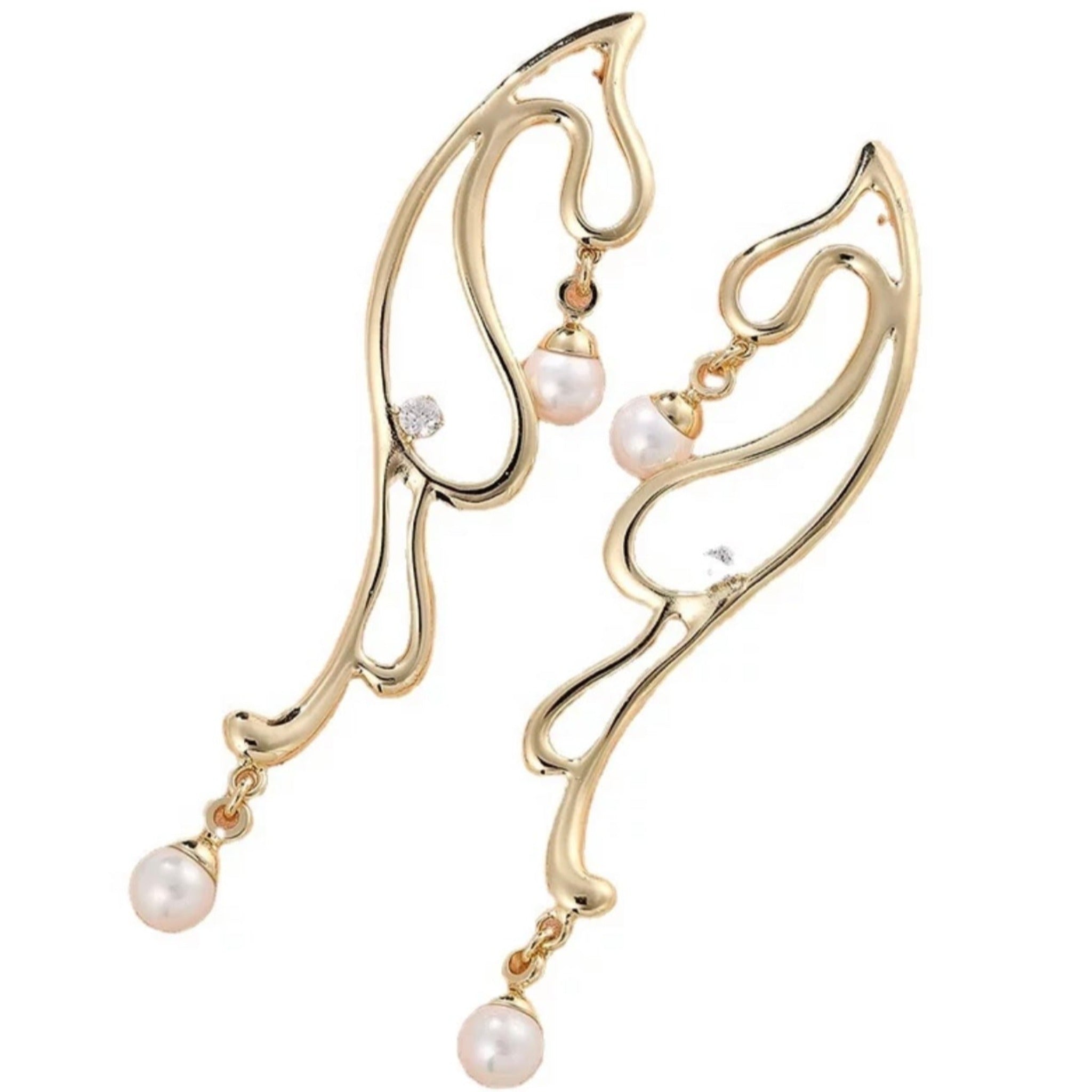 Let your ears be the canvas of your creative artistic brilliance. Its jewelry in flattering pearl, delicately shaped so as not to overpower, perfectly accents your beauty and taste. The design drop earrings are attached to a pearl crystal gems on both ends. This gorgeous earring will never go out of fashion. It is a great quality earring that is made from gold-plated and zinc alloy, giving it a sophisticated and decent appeal for any event.