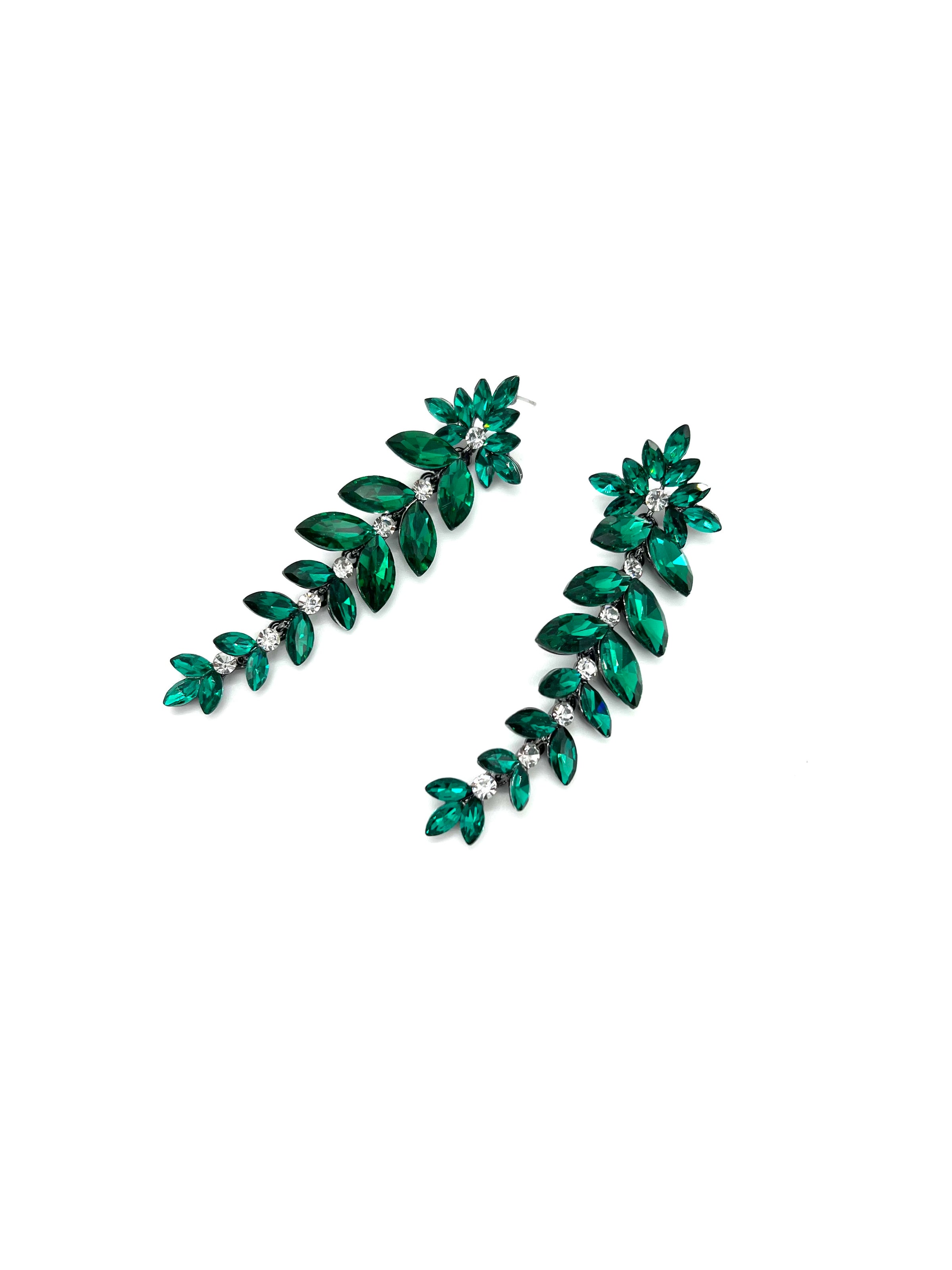 Make fashion statements with the fanciest yet clean-lined earrings out there! It's a stone-drop earring with crystal stones hanging. Fixate anyone's gaze with a refreshing all-green in the gems. The antique pattern hints at historical art, which turns it into not just earrings but a story from the past. A go-to essential for all your parties and daily wear because of its minimalistic appeal. The base of the earrings is silver-plated on zinc alloy for evergreen durability.