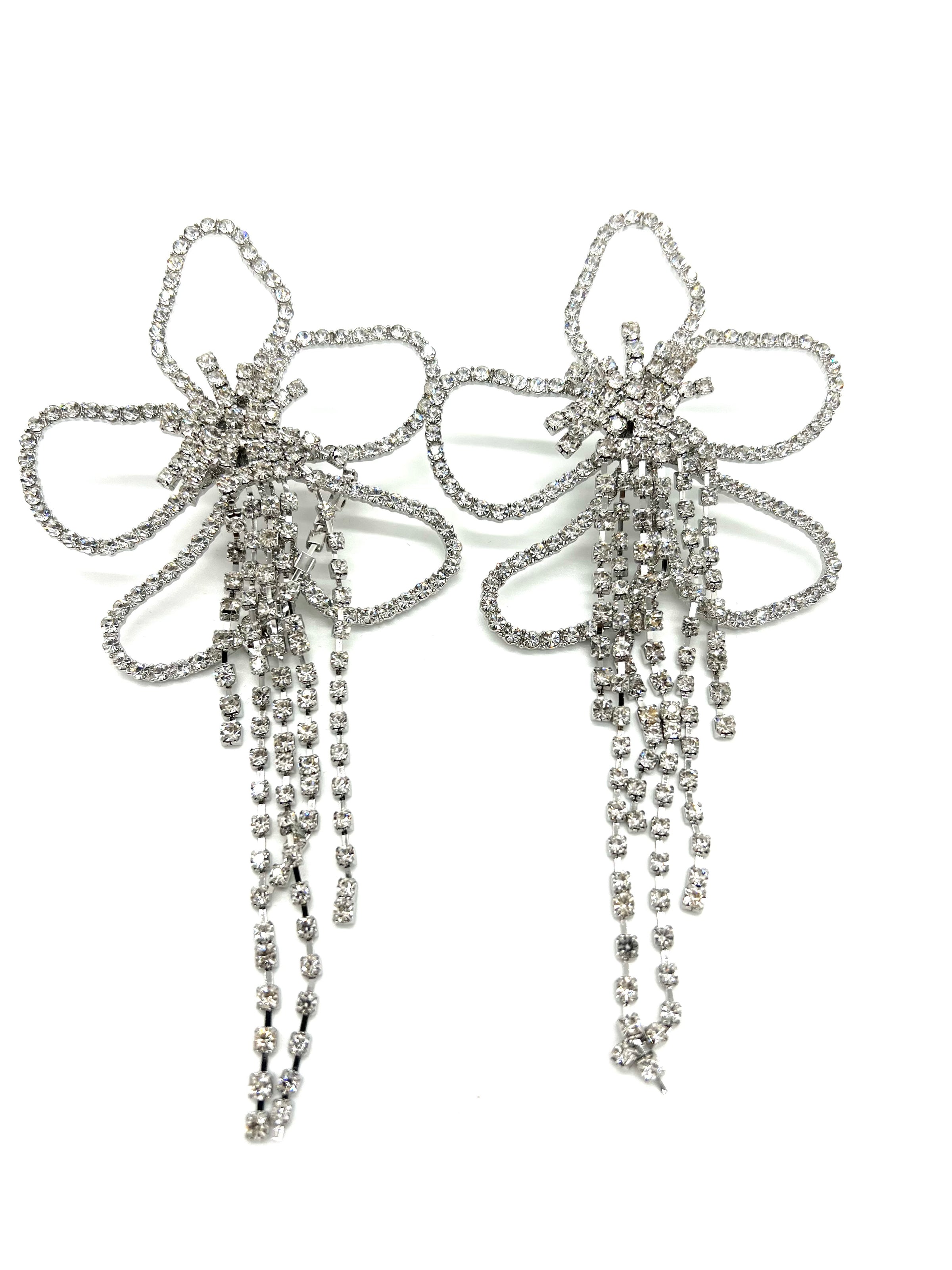 Women Rhinestone Silver Tassel Flower Drop Earring