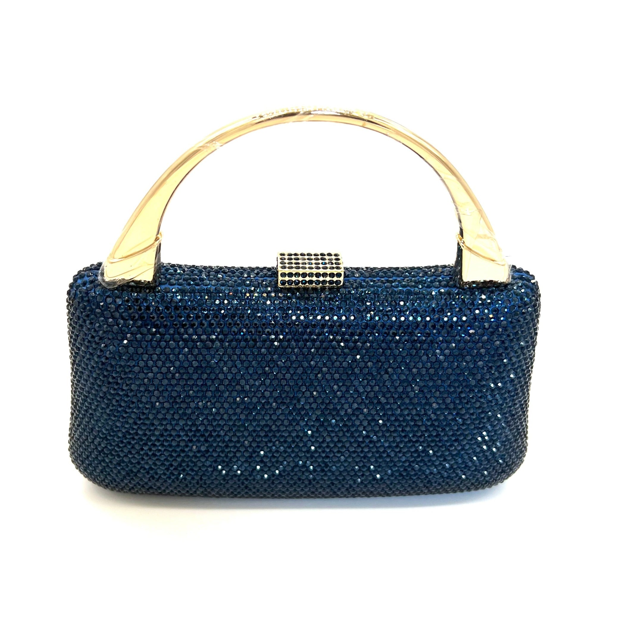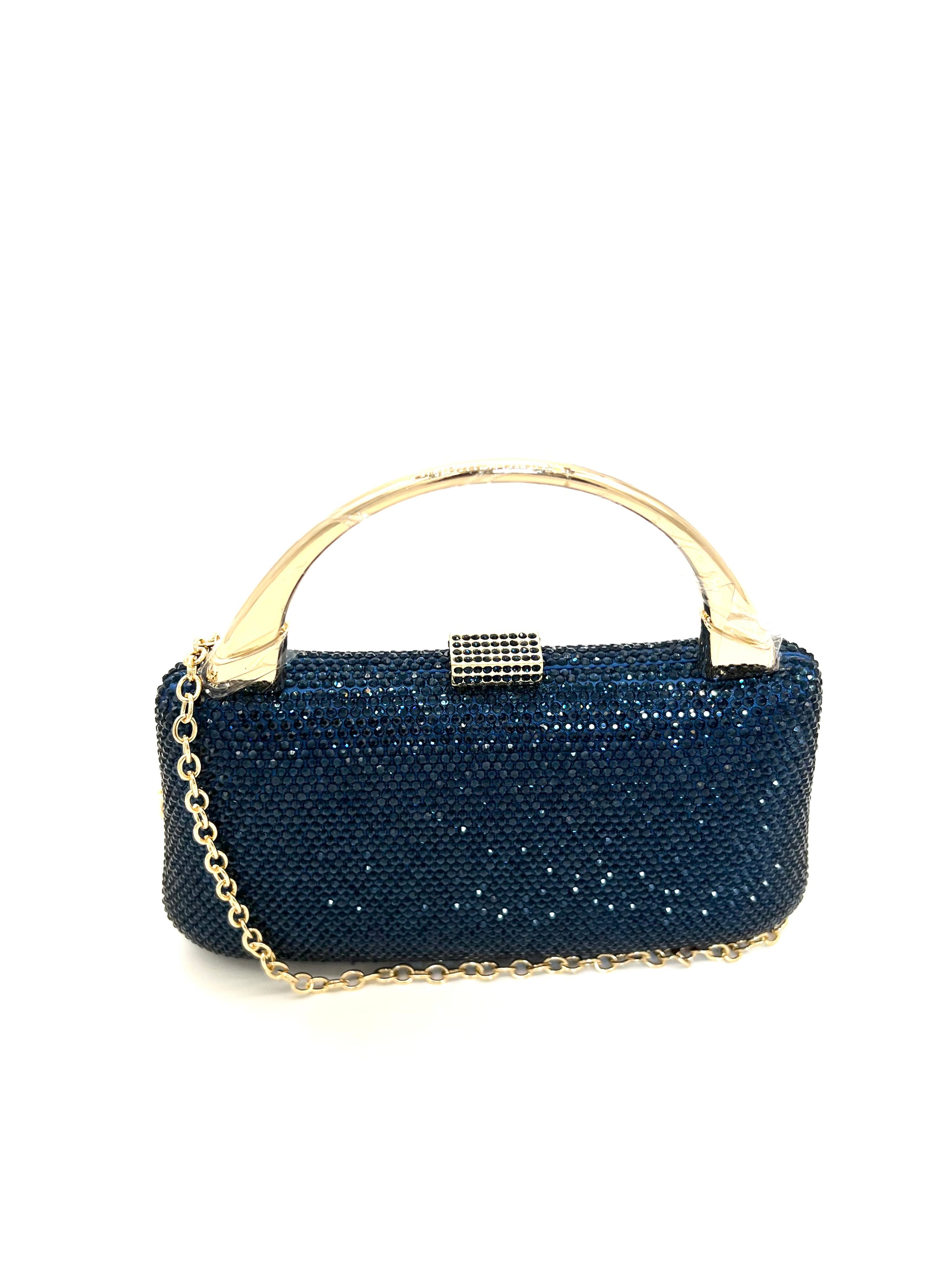 Pair your classy evening look with this rhinestone embellished purse that screams luxury. A vibrant combination of navy blue and gold, this purse is no less than an extravaganza that’ll bring you into the spotlight. A sparkly navy body with a simplistic and elegant gold handle makes this purse the highlight for every party look. Carry it as a clutch or hold it like a purse; it will definitely elevate your style statement.