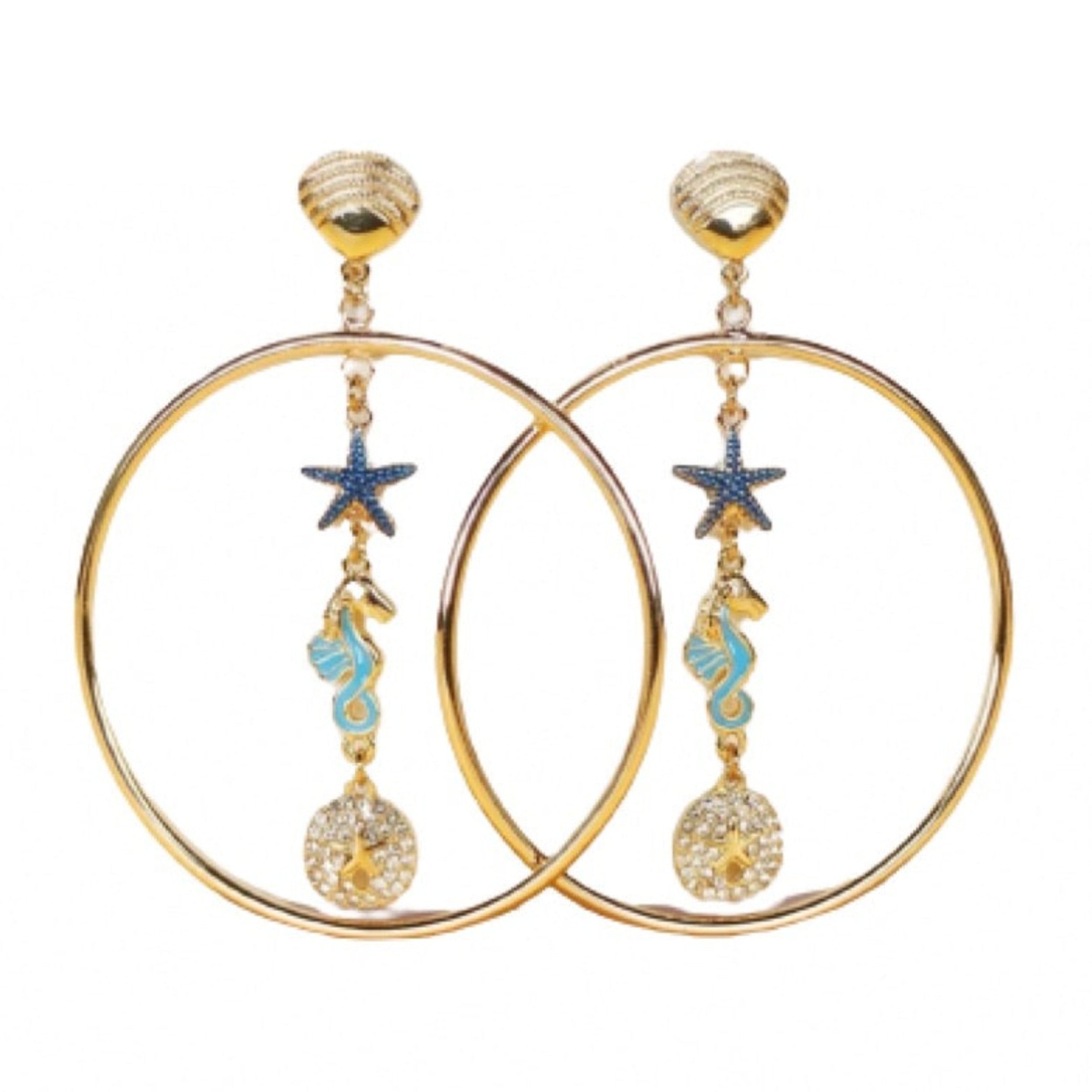Women Blue Epoxy Fish Charm Big Hoop Earring