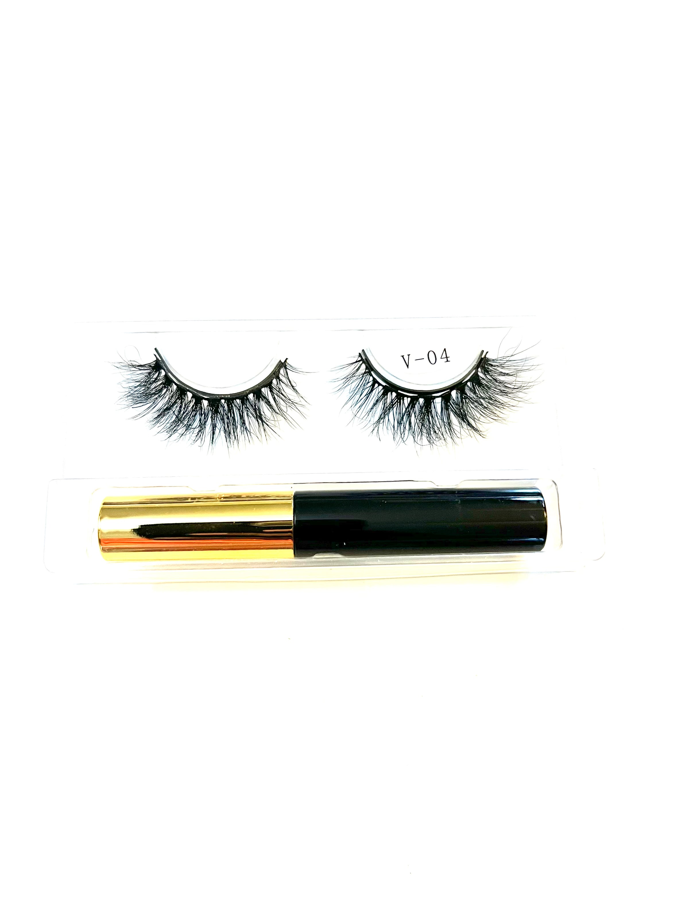 Color: Amber V-04 3D Mink Magnetic Lash and Glue Set